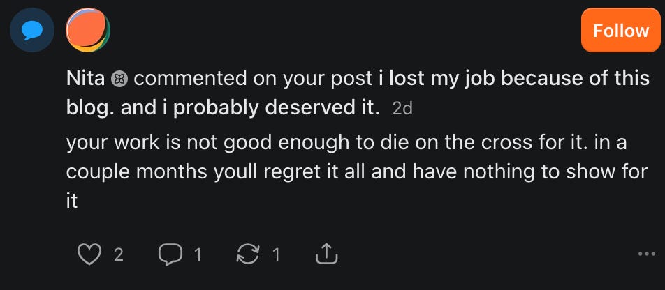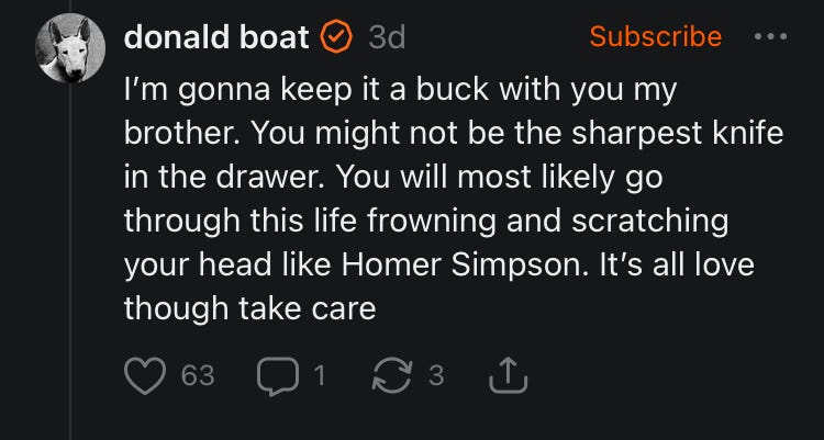 So now I am public enemy #1 on Substack (or #2 I guess). Was it worth it? Here are the results of the beef: