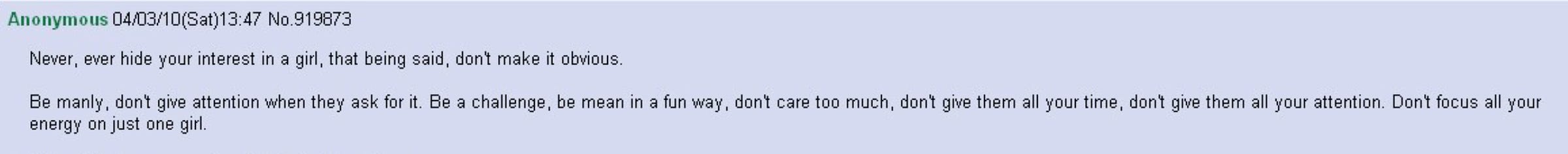 Matt Ridley’s and George Miller's works illuminated the evolutionary foundations of sexual attraction. Robert Sapolsky’s behavioral biology lectures described the interplay between genes, hormones, neurons, and sexual behavior. Rollo Tomassi’s controversial blog introduced me to Red Pill theory, which exposed the fundamental inconsistencies in my feminist mental model of intersexual attraction. It turns out, women aren’t exactly turned on by Respect.5