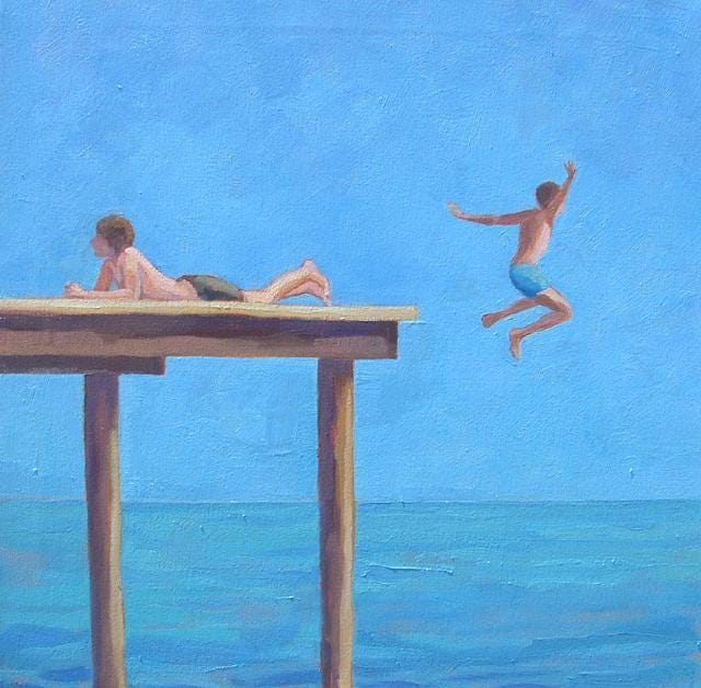 But I could never leap without looking. And I sat there at the edge for what felt like forever, staring into the water as kids leapt in around me.