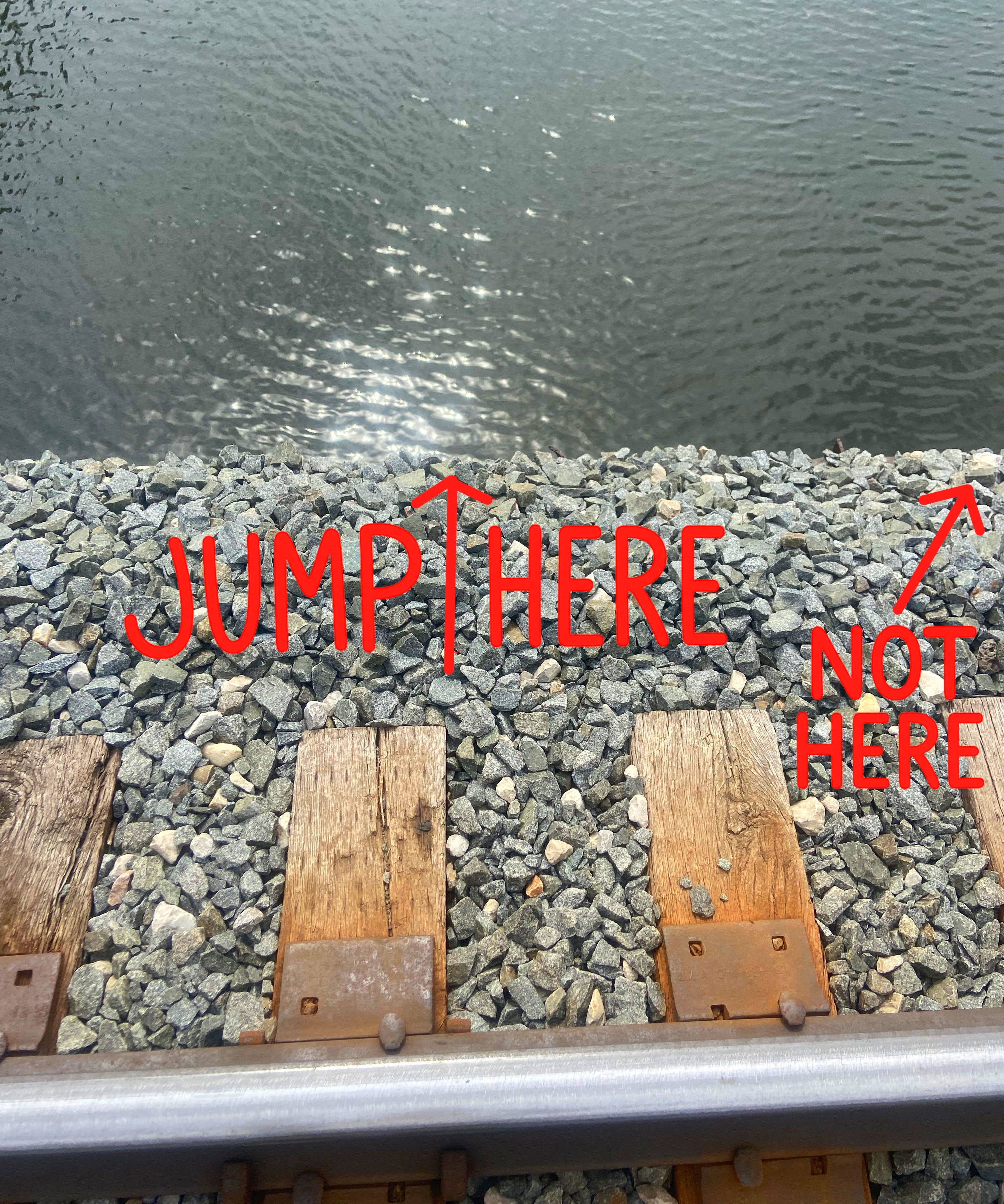 I was visiting home for the week and stopped by the river. Sat at the edge of the railroad tracks and looked at the water down below. It doesn’t feel as high up as I remembered so many years ago. Still, at the thought of jumping, a jolt of terror runs through me.