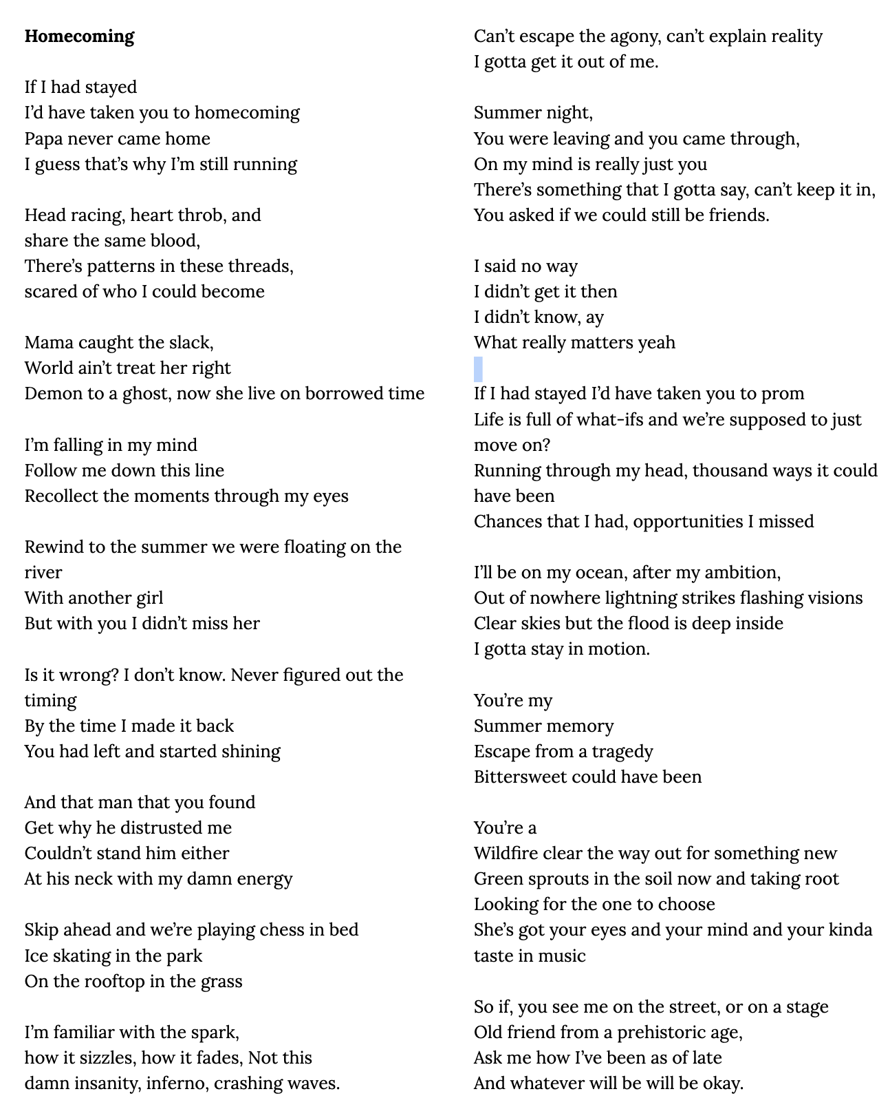 A year after that cool summer night, the last time I ever saw you, I wrote an EP about you. Well, it wasn’t all about you — only most of it was.
